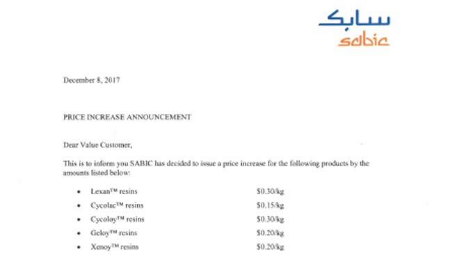 SABIC官方漲價(jià)函
