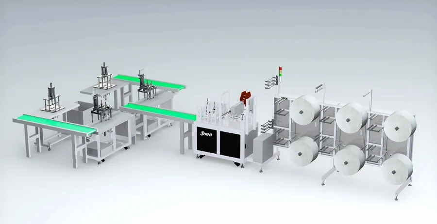 鑒于新型冠狀肺炎疫情在全球的大范圍持續(xù)傳播,為防疫物資的生產(chǎn)帶來了極大的挑戰(zhàn),其中最基本的防護(hù)用品口罩的需求成幾何倍數(shù)的增加。做為一家行業(yè)內(nèi)全球知名的設(shè)備生產(chǎn)商,信易自動(dòng)化事業(yè)處快速反應(yīng),繼推出SMKS全自動(dòng)一拖二平面口罩機(jī)后,全新推出N95/KN95口罩生產(chǎn)設(shè)備,主要用于N95/KN95口罩成型,整卷布料放卷后經(jīng)過滾輪驅(qū)動(dòng)上料,布料通過自動(dòng)上料,鼻梁條整卷牽引開卷,定長裁切后導(dǎo)入至包邊布料中。口罩外形通過超聲模具滾焊,焊接封邊,經(jīng)滾切刀裁切成型,通過滾筒將成型的口罩進(jìn)行輸出,再由人工用超聲波焊接耳帶,最后對(duì)口罩進(jìn)行封邊,標(biāo)準(zhǔn)整套設(shè)備:打片機(jī)x1+封邊機(jī)x2+耳帶機(jī)x2。