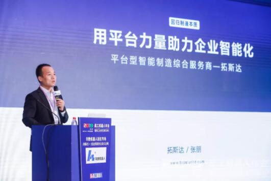 ????????拓斯達(dá)機(jī)器人事業(yè)部總經(jīng)理——張朋發(fā)表了“用平臺力量助力企業(yè)智能化”的主題分享。拓斯達(dá)將提供適合當(dāng)下企業(yè)智能改造實(shí)施的最佳路徑,將以企業(yè)需求為核心,提供助力制造產(chǎn)業(yè)為對象的整體方案,建立以硬件+服務(wù)+數(shù)據(jù)為底層的結(jié)構(gòu)化平臺,對企業(yè)智能化升級進(jìn)行深度解構(gòu)。