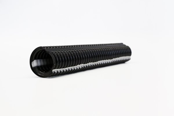 ????????柔性電纜管理系統(tǒng)的新型Polyflex波紋管,特別是用于車輛制造中,標(biāo)志著Schlemmer Group對TPE組件的要求已經(jīng)提高。為了避免產(chǎn)生尖銳的邊緣,并使狹縫波紋管安裝速度加快,產(chǎn)品開發(fā)人員的設(shè)計(jì)旨在通過共擠出將PA和TPE結(jié)合在一起。
