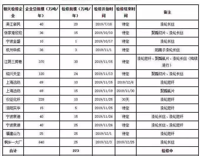????????1、四川能投化學PTA裝置于2019年5月底投產
