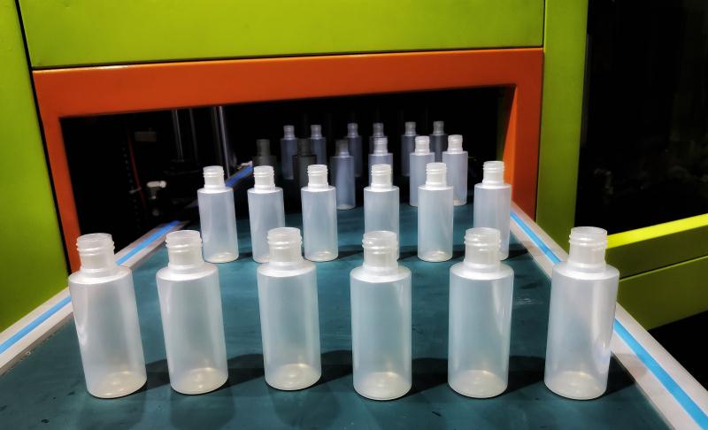 ????????本屆展會(huì),精業(yè)機(jī)器展出了全自動(dòng)一步法“注-拉-吹”機(jī)WISB-88AS,配合一出六腔的PET模具,在現(xiàn)場(chǎng)生產(chǎn)化妝品包裝中最常見(jiàn)的100ml精華液瓶,吸引了諸多目光。