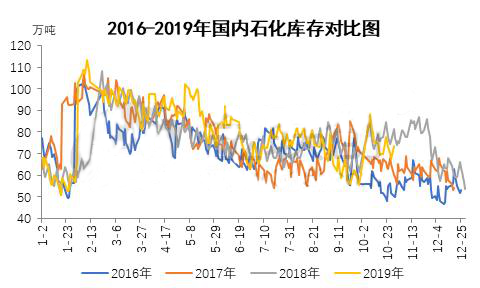 ????????2019年以來,從國內(nèi)石化主要塑料產(chǎn)品庫存情況來看,一、二季度受需求低迷,國內(nèi)產(chǎn)能不斷增加預(yù)期等因素影響,庫存高于往年季節(jié)性同期,但進(jìn)入三季度,塑料下游主要需求數(shù)據(jù)向好,塑料制品產(chǎn)量與塑料制品出口量恢復(fù)增長(zhǎng),石化庫存去化理想,庫存陸續(xù)接近往年季節(jié)性同期水平。尤其8月底及9月份,國內(nèi)石化庫存水平已經(jīng)明顯低于前三年歷史水平。進(jìn)入10月份,由于國慶假期原因,庫存快速累積至歷史高位,但受中美貿(mào)易關(guān)系緩和,重啟貿(mào)易談判以及沙特突發(fā)“黑天鵝”事件利好原油等宏觀因素利好,石化庫存快速下降和,截止10月份下旬,石化庫存已經(jīng)低于2018年同期6-7萬噸。