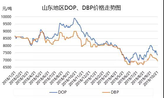 ????????如上圖所示,國(guó)內(nèi)DOP、DBP價(jià)格亦是不斷下行。就DOP而言,行業(yè)供應(yīng)充足,去庫(kù)存阻力重重,為減緩出貨阻力,市場(chǎng)低價(jià)不斷增加,疊加原料辛醇及苯酐跌勢(shì),偏空情緒維持,愈跌愈不買跌始終貫穿。但跌至目前價(jià)位:山東7300-7500元/噸自提,江蘇7500元/噸自提,華南7800-7900元/噸送到,加之辛醇尚未有新低價(jià)出現(xiàn),帶動(dòng)一定維價(jià),今日走勢(shì)呈現(xiàn)平穩(wěn),雖然接近心理價(jià)位,但缺乏實(shí)質(zhì)利好基礎(chǔ)上,仍多謹(jǐn)慎。就DBP而言,行業(yè)整體開工負(fù)荷不高,庫(kù)存壓力不大,且原料丁醇及萘系苯酐,一走勢(shì)基本平穩(wěn),一走勢(shì)破位下行,導(dǎo)致市場(chǎng)雖然下行,但波動(dòng)基本窄幅度。