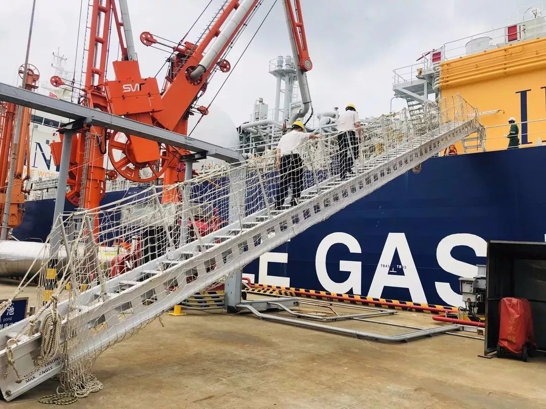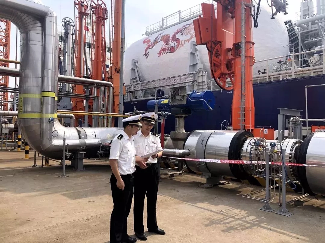 ????????運輸船靠泊后,泰州海關關員第一時間辦理了單證審核、登輪檢疫等監管通關手續,實現了“靠畢即檢”和“檢畢即卸”,科學確定船艙容量計重方案,為烯烴項目落地保駕護航。
