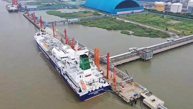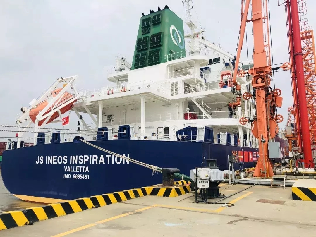 ????????8月7日13時,乙烷運輸船“英力士靈感號”靠泊泰興新浦2號碼頭。船上搭載的 1.5萬噸進口乙烷在經過南京海關所屬泰州海關的現場查驗后,順利開卸,這也是國內企業首次進口乙烷產品。