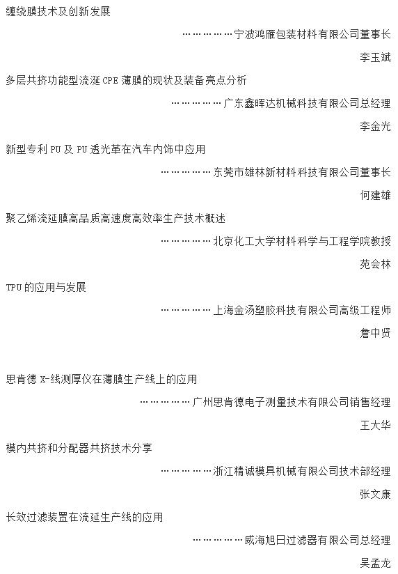 6、 為流延薄膜配套的國內外設備、備品備件和原輔材料生產等企業和機構的負責人;