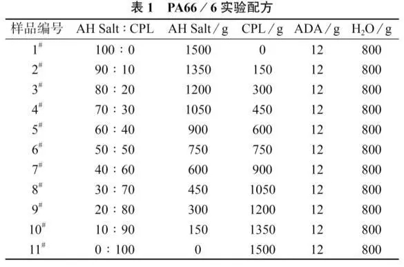 ????????PA66和PA6是目前PA產品中產量最大、應用最廣泛的品種,具有優良性能。但PA66的熔點較高,加工溫度范圍窄,而PA6的沖擊強度低,這將限制兩者在某些領域的應用。如果以己二酸己二胺鹽(AH Salt)和己內酰胺(CPL)為原料,通過共聚改性制備PA66/6,以結合二者優異的性能,將有望拓寬PA66/6的應用領域。