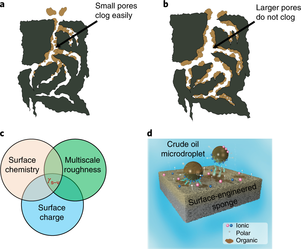 倫敦帝國理工大學和多倫多大學的研究人員已經開發出了一種經濟高效的海綿,可以較快地吸收油(不到10分鐘)。該研究文章發表在《自然》雜志上,描述了一種創新的表面工程海綿(SEnS)。該海綿有機結合了表面化學、電荷和粗糙度,擅長吸附原油微滴。