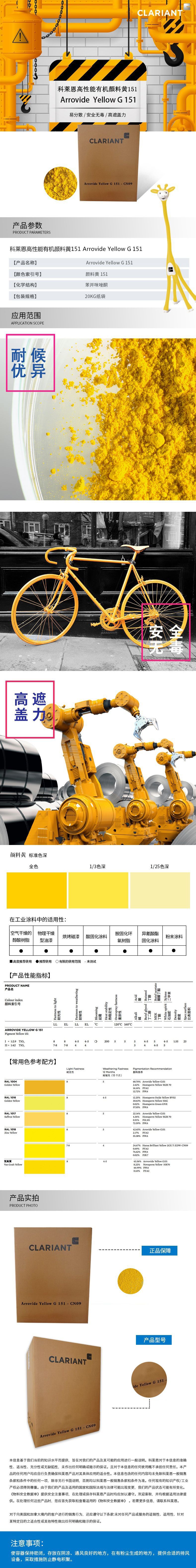科萊恩顏料Arrovide Yellow G 151 檸檬黃 涂料顏料