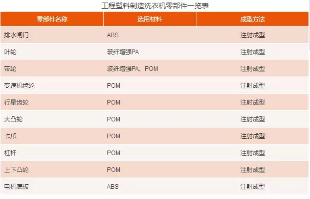 ????????洗衣機(jī)也是使用塑料件較多的家用電器之一,主要包括內(nèi)筒、底座、波輪等,一臺雙缸洗衣機(jī)使用塑料約7-12千克,全自動(dòng)洗衣機(jī)可達(dá)20千克,占洗衣機(jī)總重量的30%左右。其中,使用的最多的是通用塑料PP,工程塑料用的較多的是POM、PA和ABS。